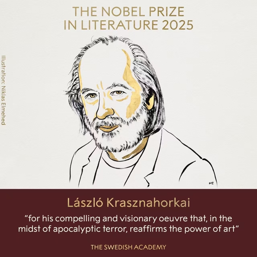 “他那震撼人心、富有远见的创作,在灾难与恐惧中,重申了艺术的力量。”北京时间10月9日晚,2025诺贝尔文学奖在瑞典斯德哥尔摩揭晓,71岁匈牙利作家拉斯洛·克拉斯纳霍尔凯获奖。