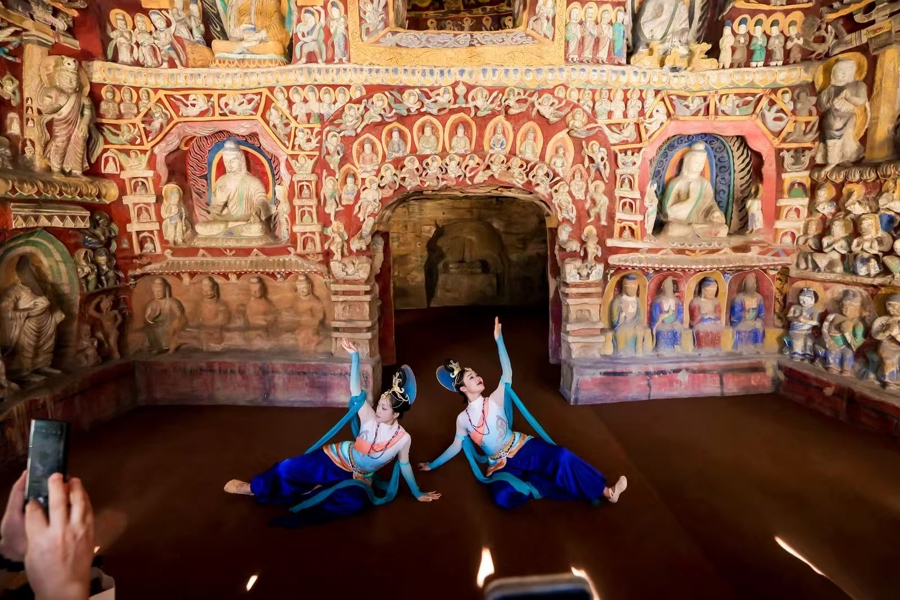 本次特展还将带来“2023全球世界遗产教育创新案例奖”——云冈乐舞的上海首秀。这支乐舞由本次展览执行策展人、2022北京冬奥会开幕式分场导演田晴及其团队执导编排,以云冈飞天、力士等形象姿态为蓝本、融合北方游牧民族音乐风格,再现了北魏胡汉艺术交融语境下的乐舞场面。展览期间每逢周末和节假日,这支云冈乐舞都将定期上演。