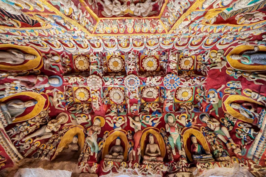 云冈石窟第20窟,有着云冈最为著名的露天大佛,然而,大佛西侧的立像长久地几近消失于历史。10月10日于上海面向公众开放的《云海相望——云冈石窟艺术特展》中,神秘的第20窟西立佛在学术研究与科技力量的加持下重现。令人期待的,还有云冈第12窟“音乐窟”1:1空降。